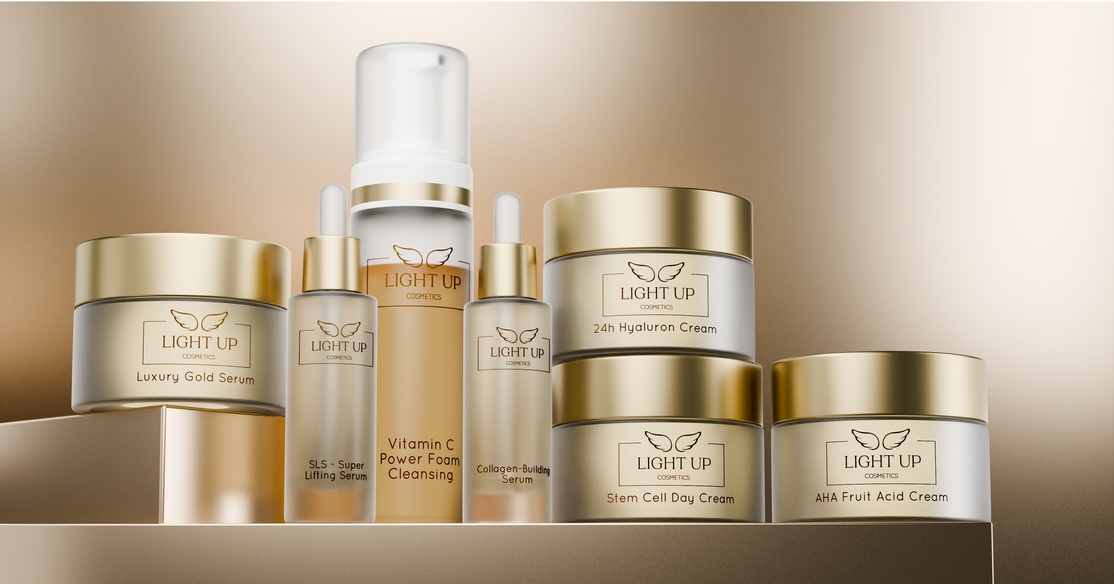 Das Ziel der Anti-Aging-Produkte von Light Up Cosmetics ist der Schutz und die Aktivierung der epidermalen Stammzellen für eine jugendlich strahlende Haut und definierte Gesichtskonturen. Falten werden geglättet und die vorzeitige Hautalterung verlangsamt.